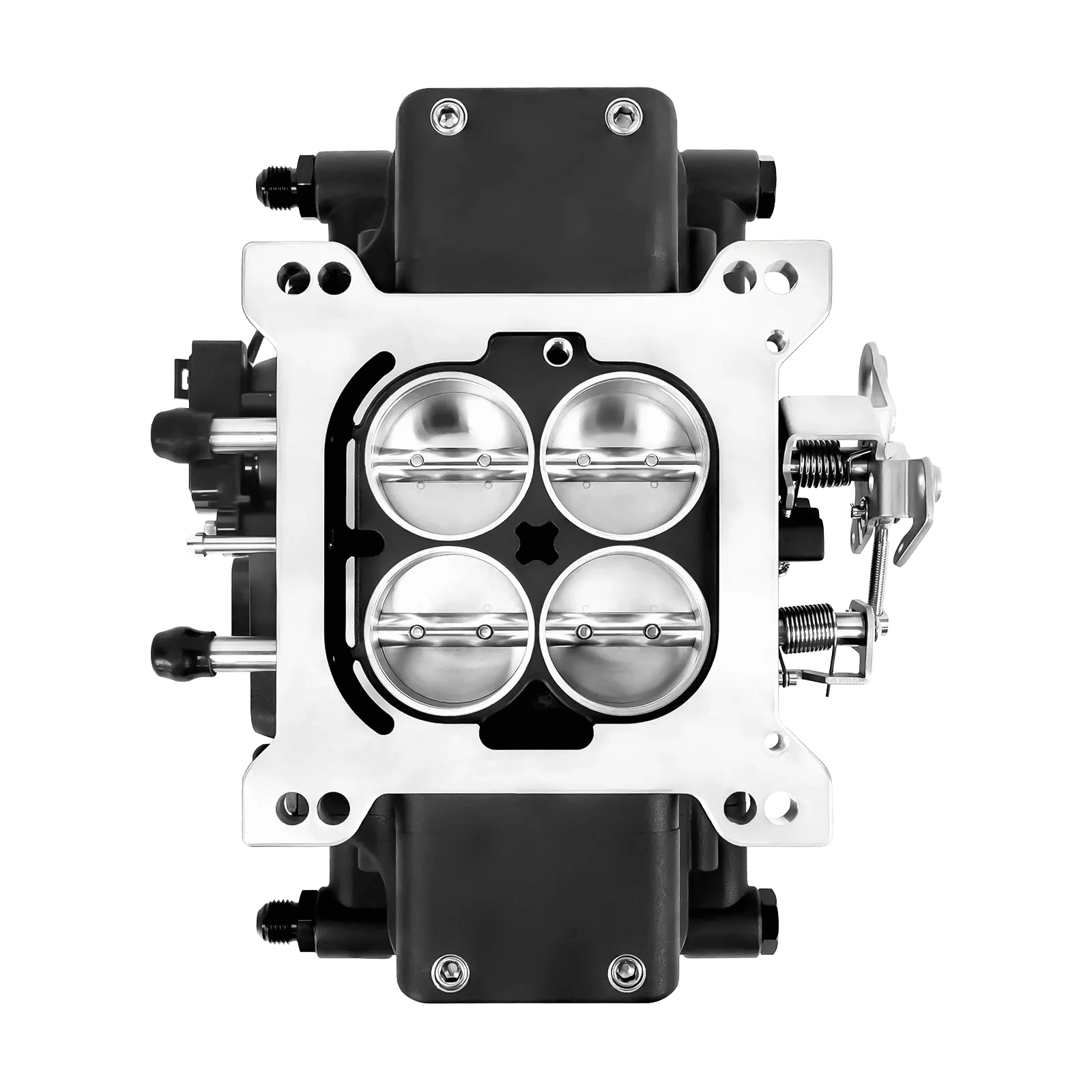 The Royal Flush system was designed with a 4150 style flange, making it an exact fit for the majority of small and big block applications. If your manifold is different, you can simply use a flange adaptor to make it work. The system is generally compatible with stock ignition, but to take advantage of timing control features that the system offers, you'll want to use a magnetic pickup distributor and separate ignition coil- both of which are included in our Top End and Master Kits!